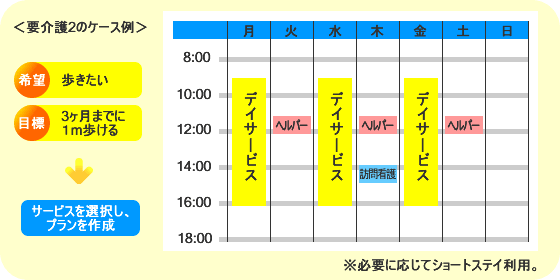 ケアプランはケアマネジャーに相談し作成して貰うこととなりますが、ご自身で作成することも可能です。